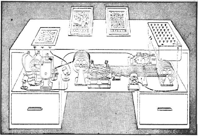 Fig. 2.1 Memex, as it was illustrated for LIFE Magazine, 1945. The desk contains two main microfilm projectors and mechanical apparatus to retrieve the pages for a given trail.